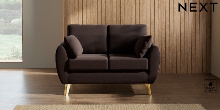 7.2.10 Wilson 2 Seater Small Sofa Fine Chenille Easy Clean Chocolate Brown Metal Tapered - Gold | Made Click here to use our website with more accessibility support, for example screen readers