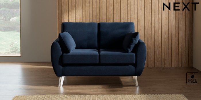 7.2.10 Wilson 2 Seater Small Sofa Fine Chenille Easy Clean Dark Navy Blue Metal Tapered - Chrome | Made Click here to use our website with more accessibility support, for example screen readers