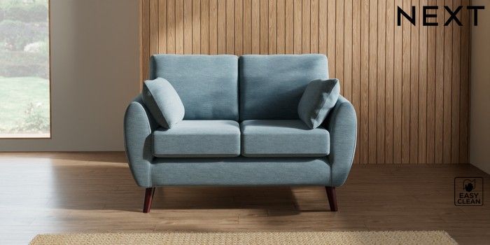 7.2.10 Wilson 2 Seater Small Sofa Fine Chenille Easy Clean Mid Blue Retro Tapered - Dark Brown | Made Click here to use our website with more accessibility support, for example screen readers
