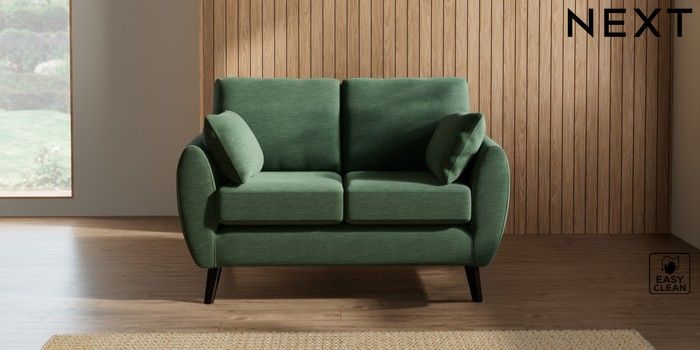 7.2.10 Wilson 2 Seater Small Sofa Fine Chenille Easy Clean Mid Khaki Green Retro Tapered - Dark | Made Click here to use our website with more accessibility support, for example screen readers
