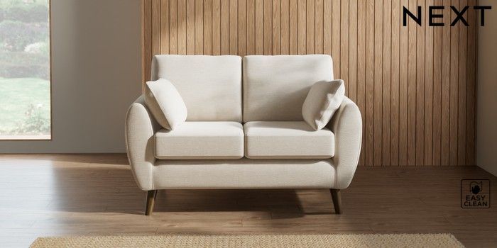 7.2.10 Wilson 2 Seater Small Sofa Fine Chenille Easy Clean Oyster Retro Tapered - Mid | Made Click here to use our website with more accessibility support, for example screen readers