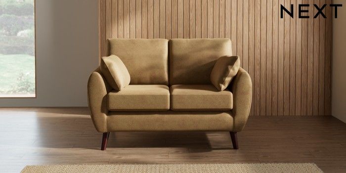 7.2.10 Wilson 2 Seater Small Sofa Luxe Chenille Honey Yellow Retro Tapered - Dark Brown | Made Click here to use our website with more accessibility support, for example screen readers