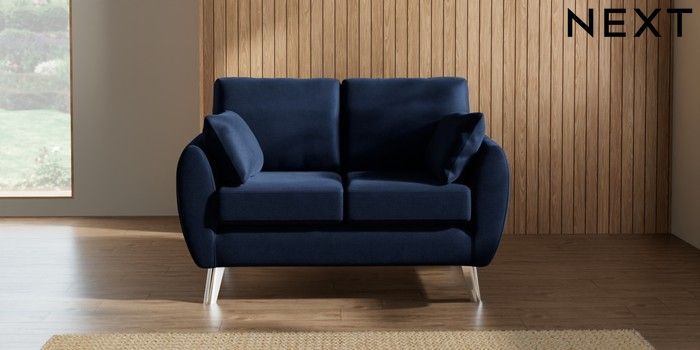 7.2.10 Wilson 2 Seater Small Sofa Luxe Chenille Navy Blue Metal Tapered - Chrome | Made Click here to use our website with more accessibility support, for example screen readers