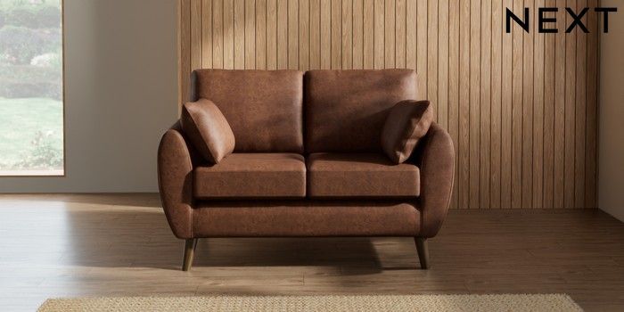 7.2.10 Wilson 2 Seater Small Sofa Monza Faux Leather Easy Clean Chestnut Brown Retro Tapered - Mid | Made Click here to use our website with more accessibility support, for example screen readers