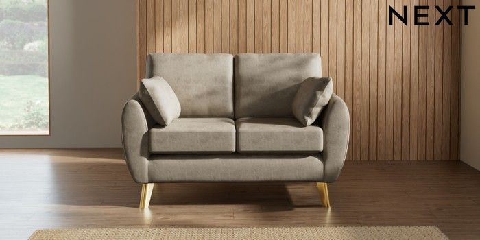 7.2.10 Wilson 2 Seater Small Sofa Monza Faux Leather Easy Clean Mink Brown Metal Tapered - Gold | Made Click here to use our website with more accessibility support, for example screen readers