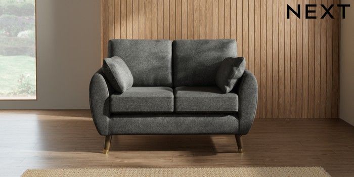 7.2.10 Wilson 2 Seater Small Sofa Plush Chenille Dark Grey Low Retro Tapered Metal Cap - Mid | Made Click here to use our website with more accessibility support, for example screen readers