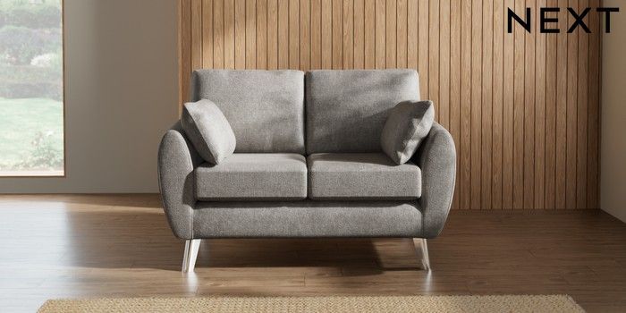 7.2.10 Wilson 2 Seater Small Sofa Plush Chenille Light Grey Metal Tapered - Chrome | Made Click here to use our website with more accessibility support, for example screen readers