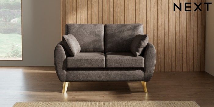 7.2.10 Wilson 2 Seater Small Sofa Plush Chenille Mink Brown Metal Tapered - Gold | Made Click here to use our website with more accessibility support, for example screen readers
