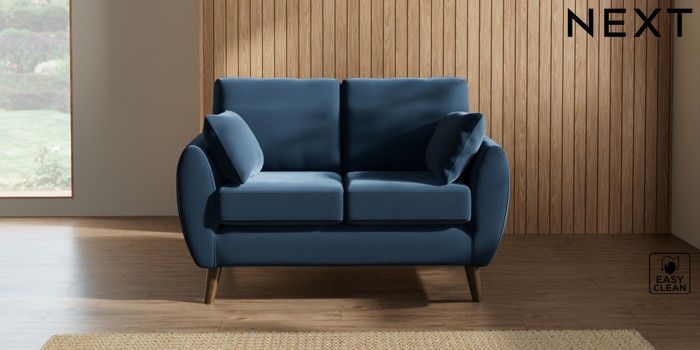 7.2.10 Wilson 2 Seater Small Sofa Plush Velvet Easy Clean Airforce Blue Retro Tapered - Mid | Made Click here to use our website with more accessibility support, for example screen readers