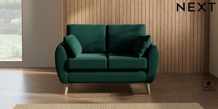 7.2.10 Wilson 2 Seater Small Sofa Plush Velvet Easy Clean Bottle Green Retro Tapered - Light | Made Click here to use our website with more accessibility support, for example screen readers