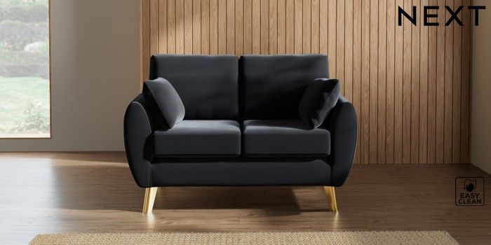 7.2.10 Wilson 2 Seater Small Sofa Plush Velvet Easy Clean Charcoal Grey Metal Tapered - Gold | Made Click here to use our website with more accessibility support, for example screen readers