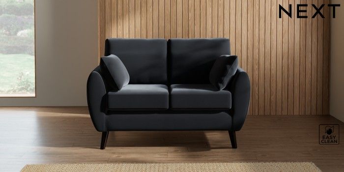 7.2.10 Wilson 2 Seater Small Sofa Plush Velvet Easy Clean Charcoal Grey Retro Tapered - Dark | Made Click here to use our website with more accessibility support, for example screen readers