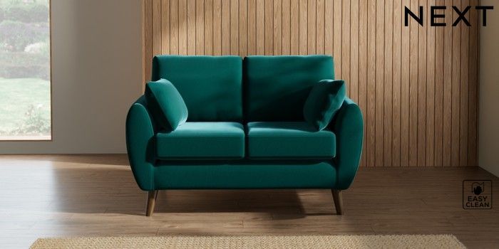 7.2.10 Wilson 2 Seater Small Sofa Plush Velvet Easy Clean Juniper Green Retro Tapered - Mid | Made Click here to use our website with more accessibility support, for example screen readers