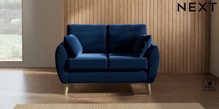 7.2.10 Wilson 2 Seater Small Sofa Plush Velvet Easy Clean Navy Blue Retro Tapered - Light | Made Click here to use our website with more accessibility support, for example screen readers