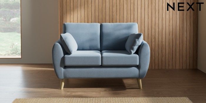 7.2.10 Wilson 2 Seater Small Sofa Relaxed Linen Look Mid Blue Retro Tapered - Light | Made Click here to use our website with more accessibility support, for example screen readers