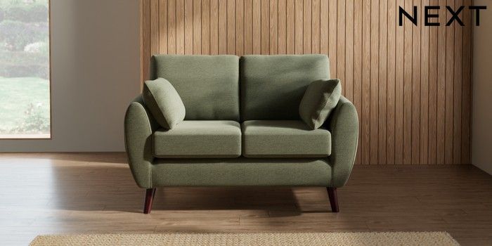 7.2.10 Wilson 2 Seater Small Sofa Ripple Chenille Mid Moss Green Retro Tapered - Dark Brown | Made Click here to use our website with more accessibility support, for example screen readers