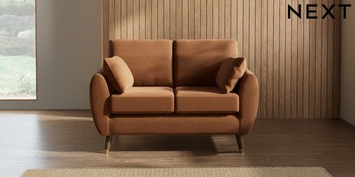 7.2.10 Wilson 2 Seater Small Sofa Ripple Chenille Mid Rust Brown Low Retro Tapered Metal Cap - Mid | Made Click here to use our website with more accessibility support, for example screen readers