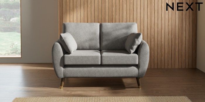 7.2.10 Wilson 2 Seater Small Sofa Tweedy Chenille Mid Grey Low Retro Tapered Metal Cap - Mid | Made Click here to use our website with more accessibility support, for example screen readers