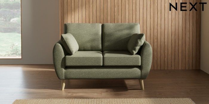 7.2.10 Wilson 2 Seater Small Sofa Tweedy Chenille Mid Moss Green Retro Tapered - Light | Made Click here to use our website with more accessibility support, for example screen readers