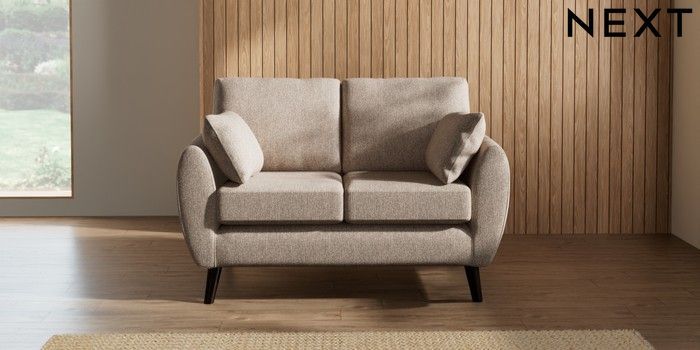 7.2.10 Wilson 2 Seater Small Sofa Tweedy Chenille Mid Natural Retro Tapered - Dark | Made Click here to use our website with more accessibility support, for example screen readers