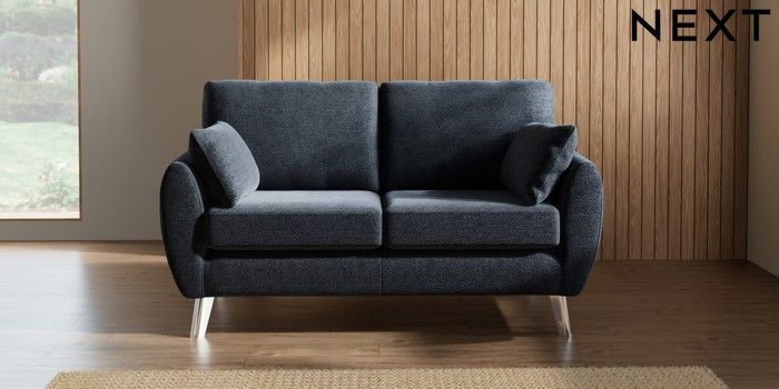 7.2.10 Wilson 2 Seater Sofa Boucle Chenille Dark Slate Blue Metal Tapered - Chrome | Made Click here to use our website with more accessibility support, for example screen readers