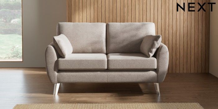 7.2.10 Wilson 2 Seater Sofa Boucle Chenille Light Natural Metal Tapered - Chrome | Made Click here to use our website with more accessibility support, for example screen readers