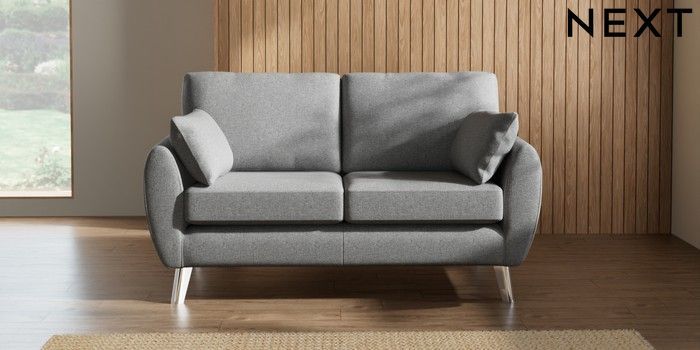 7.2.10 Wilson 2 Seater Sofa Chunky Weave Mid Grey Metal Tapered - Chrome | Made Click here to use our website with more accessibility support, for example screen readers