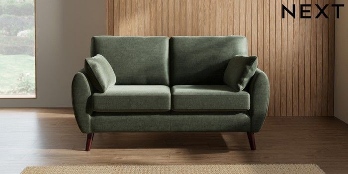 7.2.10 Wilson 2 Seater Sofa Luxe Chenille Mid Green Retro Tapered - Dark Brown | Made Click here to use our website with more accessibility support, for example screen readers