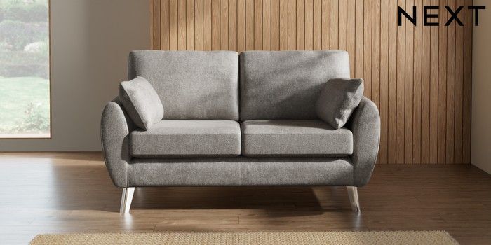 7.2.10 Wilson 2 Seater Sofa Plush Chenille Light Grey Metal Tapered - Chrome | Made Click here to use our website with more accessibility support, for example screen readers