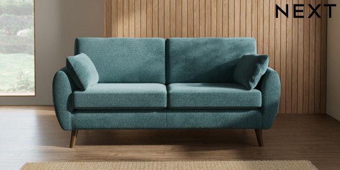 7.2.10 Wilson 3 Seater Small Sofa Chunky Chenille Mid Teal Green Retro Tapered - Mid | Made Click here to use our website with more accessibility support, for example screen readers