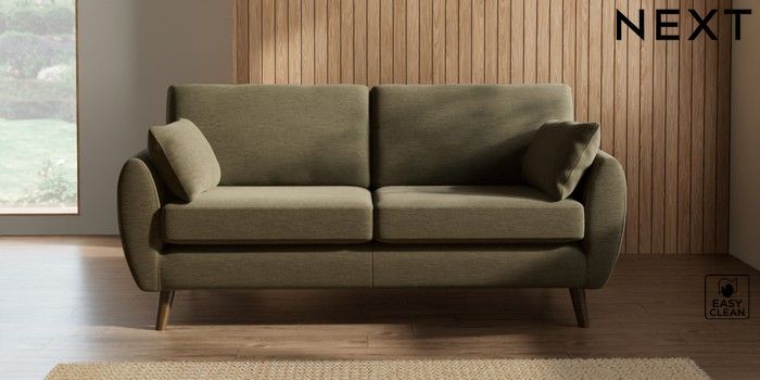 7.2.10 Wilson 3 Seater Small Sofa Fine Chenille Easy Clean Dark Moss Green Retro Tapered - Mid | Made Click here to use our website with more accessibility support, for example screen readers