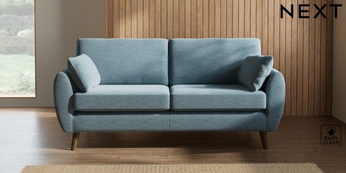 7.2.10 Wilson 3 Seater Small Sofa Fine Chenille Easy Clean Mid Blue Retro Tapered - Mid | Made Click here to use our website with more accessibility support, for example screen readers