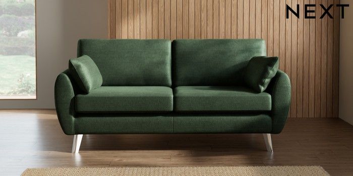 7.2.10 Wilson 3 Seater Small Sofa Luxe Chenille Dark Green Metal Tapered - Chrome | Made Click here to use our website with more accessibility support, for example screen readers