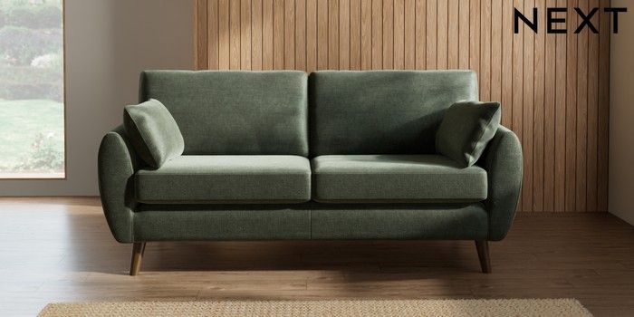 7.2.10 Wilson 3 Seater Small Sofa Luxe Chenille Mid Green Retro Tapered - Mid | Made Click here to use our website with more accessibility support, for example screen readers
