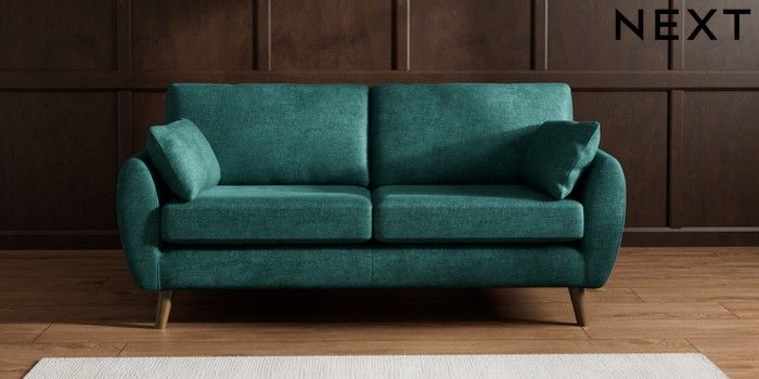 7.2.10 Wilson 3 Seater Small Sofa Plush Chenille Dark Teal Green Retro Tapered - Mid | Made Click here to use our website with more accessibility support, for example screen readers