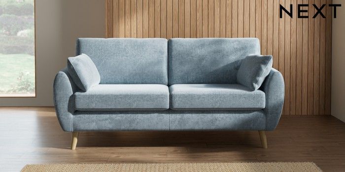 7.2.10 Wilson 3 Seater Small Sofa Plush Chenille Light Blue Retro Tapered - Light | Made Click here to use our website with more accessibility support, for example screen readers