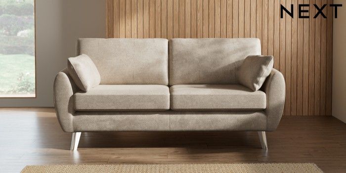 7.2.10 Wilson 3 Seater Small Sofa Plush Chenille Light Natural Metal Tapered - Chrome | Made Click here to use our website with more accessibility support, for example screen readers