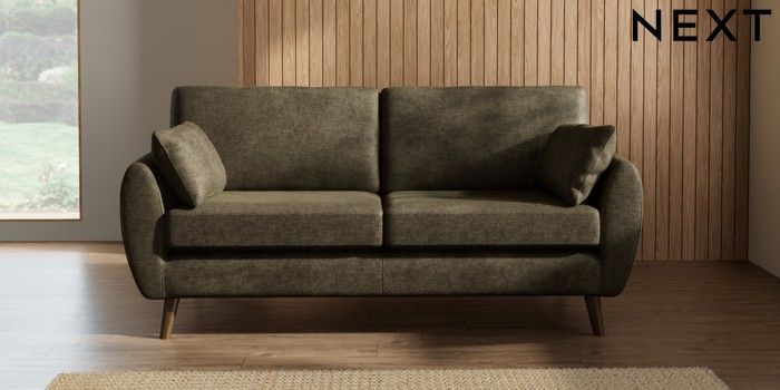 7.2.10 Wilson 3 Seater Small Sofa Plush Chenille Moss Green Retro Tapered - Mid | Made Click here to use our website with more accessibility support, for example screen readers