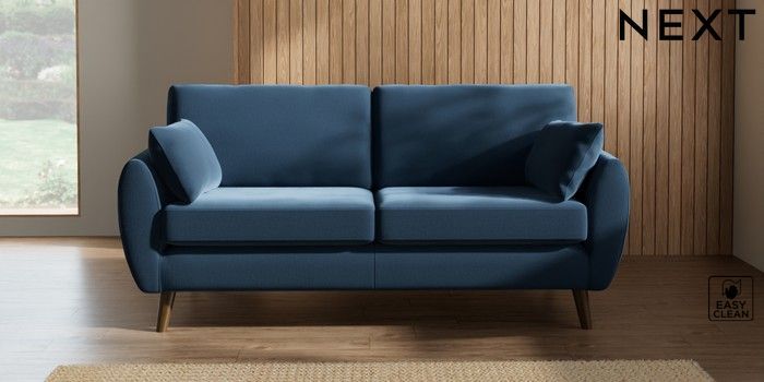 7.2.10 Wilson 3 Seater Small Sofa Plush Velvet Easy Clean Airforce Blue Retro Tapered - Mid | Made Click here to use our website with more accessibility support, for example screen readers
