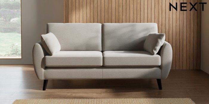 7.2.10 Wilson 3 Seater Small Sofa Ripple Chenille Light Natural Retro Tapered - Dark | Made Click here to use our website with more accessibility support, for example screen readers