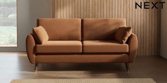 7.2.10 Wilson 3 Seater Small Sofa Ripple Chenille Mid Rust Brown Low Retro Tapered Metal Cap - Mid | Made Click here to use our website with more accessibility support, for example screen readers