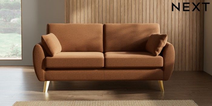 7.2.10 Wilson 3 Seater Small Sofa Ripple Chenille Mid Rust Brown Metal Tapered - Gold | Made Click here to use our website with more accessibility support, for example screen readers