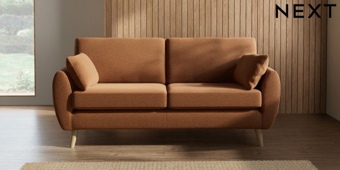 7.2.10 Wilson 3 Seater Small Sofa Ripple Chenille Mid Rust Brown Retro Tapered - Light | Made Click here to use our website with more accessibility support, for example screen readers