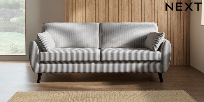 7.2.10 Wilson 3 Seater Sofa Chenille Stripe Slate Blue Retro Tapered - Dark | Made Click here to use our website with more accessibility support, for example screen readers
