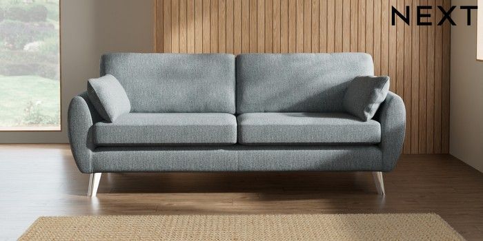 7.2.10 Wilson 3 Seater Sofa Chunky Weave Mid Blue Metal Tapered - Chrome | Made Click here to use our website with more accessibility support, for example screen readers