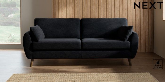 7.2.10 Wilson 3 Seater Sofa Fine Chenille Easy Clean Black Retro Tapered - Mid | Made Click here to use our website with more accessibility support, for example screen readers