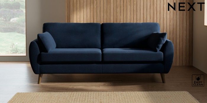 7.2.10 Wilson 3 Seater Sofa Fine Chenille Easy Clean Dark Navy Blue Retro Tapered - Mid | Made Click here to use our website with more accessibility support, for example screen readers