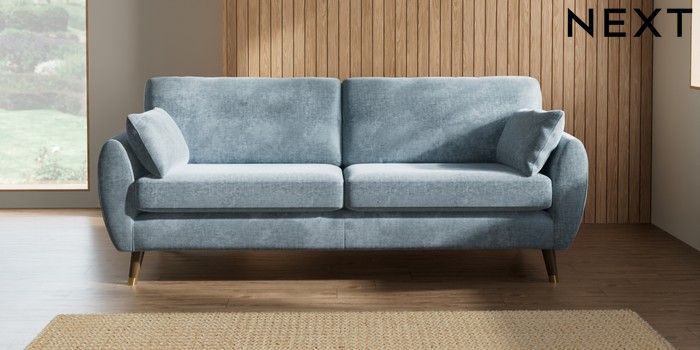 7.2.10 Wilson 3 Seater Sofa Plush Chenille Light Blue Low Retro Tapered Metal Cap - Mid | Made Click here to use our website with more accessibility support, for example screen readers