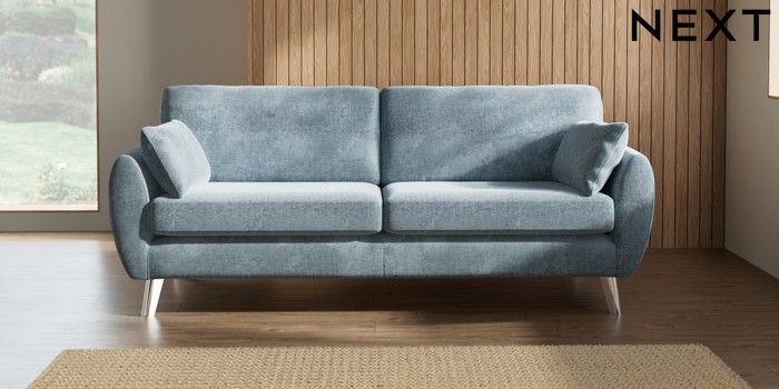 7.2.10 Wilson 3 Seater Sofa Plush Chenille Light Blue Metal Tapered - Chrome | Made Click here to use our website with more accessibility support, for example screen readers