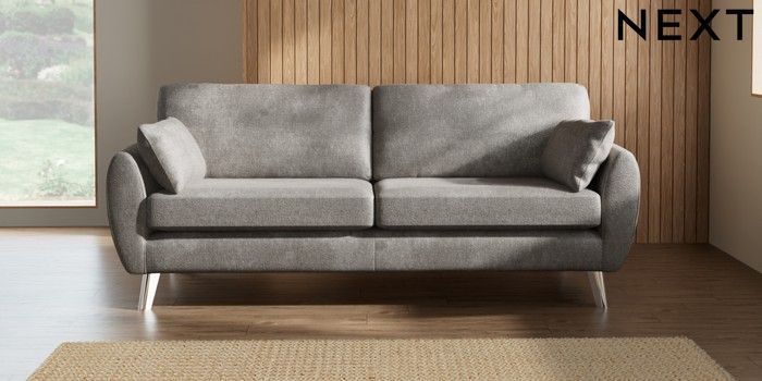 7.2.10 Wilson 3 Seater Sofa Plush Chenille Light Grey Metal Tapered - Chrome | Made Click here to use our website with more accessibility support, for example screen readers